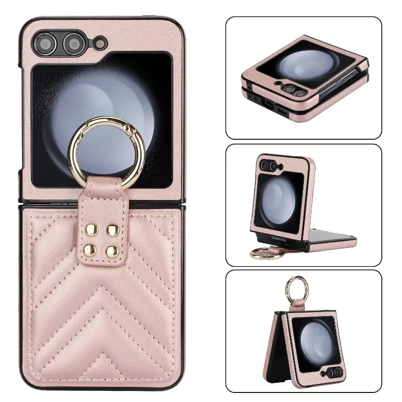 Phone Case For Samsung Galaxy Z Flip 7 Z Flip 6 Z Flip 5 Back Cover Ring Buckle Shockproof Retro PC