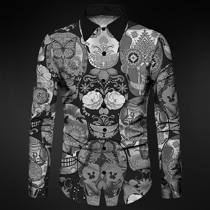 Men's Skull Geometric Pattern Shirt Button Up Shirt Long Sleeve Abstract Gothic Carnival Daily Wear Going out Fall Winter Turndown Print Button-Down Red Blue Purple Green Light Grey