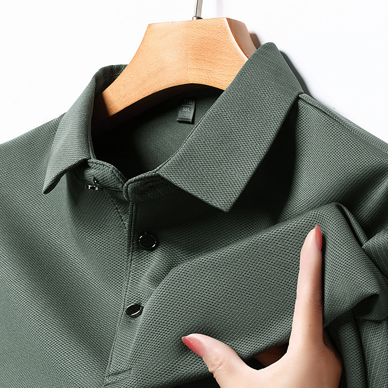Men's Polo Shirt Golf Shirt Business Casual Lapel Long Sleeve Fashion Basic Color Block Stripes Button Color Block Spring Fall Regular Fit Black Navy Blue Green Khaki Grey Polo Shirt