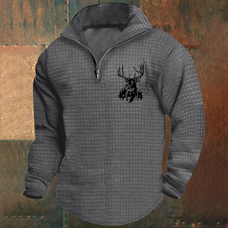 Men's Sweatshirt Waffle Sweatshirt Quarter Zip Sweatshirt White Wine Army Green Khaki Light Grey Half Zip Graphic Print Print Quarter Zip Christmas Daily Holiday Other Prints Polyester Streetwear