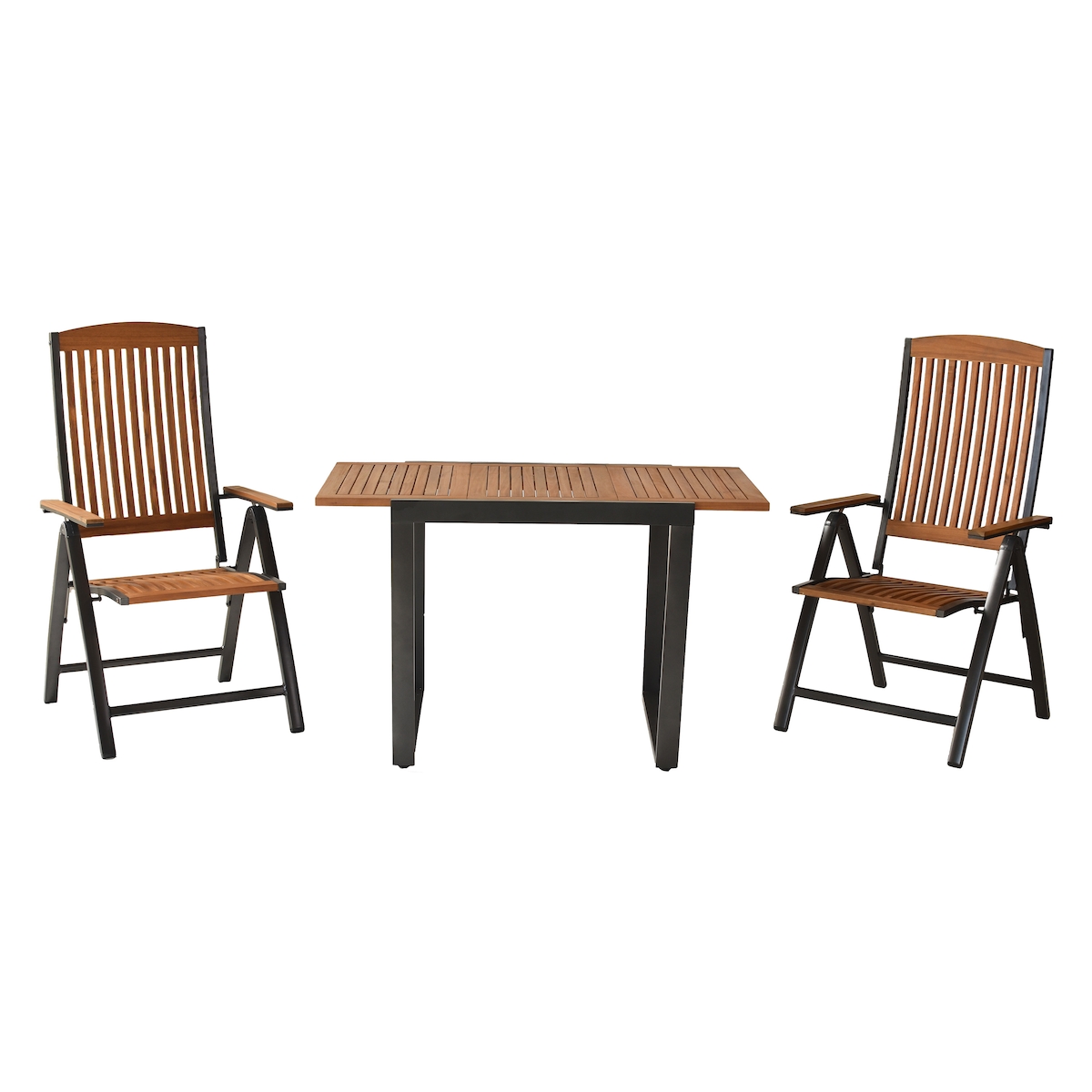 Merxx Athos Gartenmöbel Set 3tlg., 2 Klappsessel, 1 Balkonausziehtisch 80 (120) x 70 cm, Aluminium/Akazie