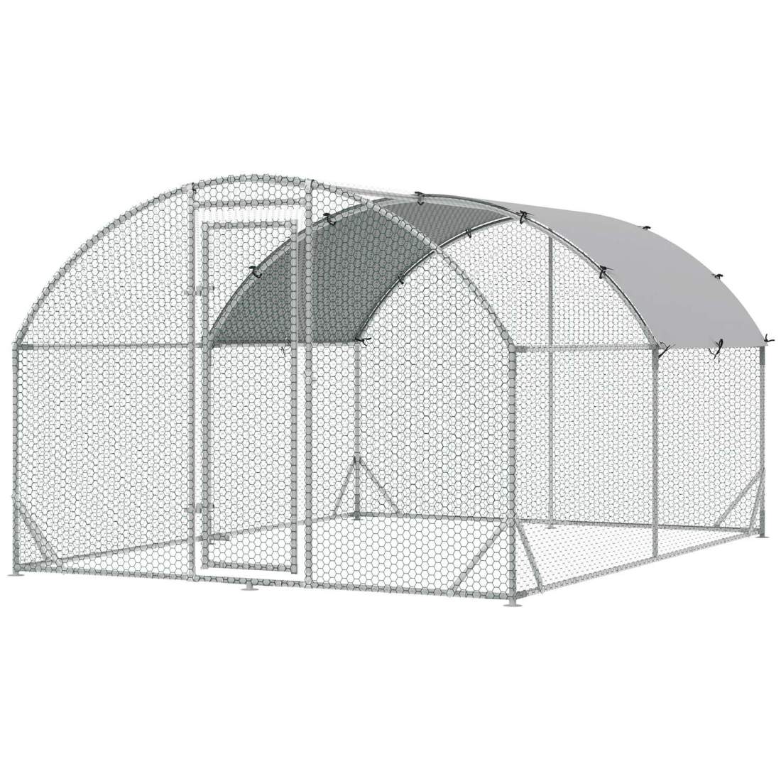 Chicken Coop Outdoor Run Valmistettu teräksestä, 280 x 380 x 197 cm Kanahäkki UV-suojatulla kannella, Ovi, Kanalaukku 6-12 kanal