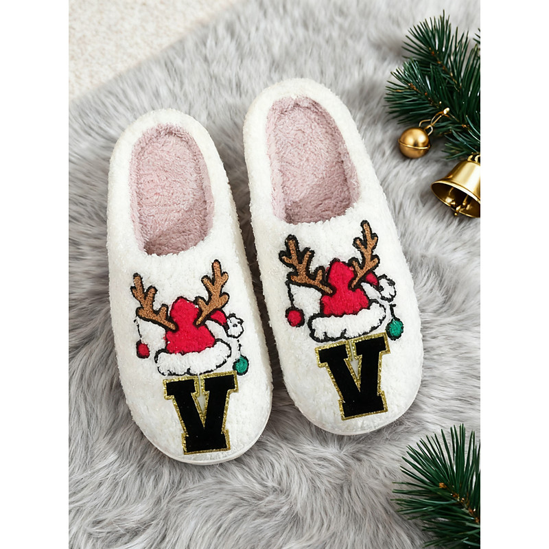 Women's Cozy Christmas Slippers with Reindeer Design – Soft Slippers with 26 Letters to Choose, Holiday Themed, Perfect for Lounging Gift Giving