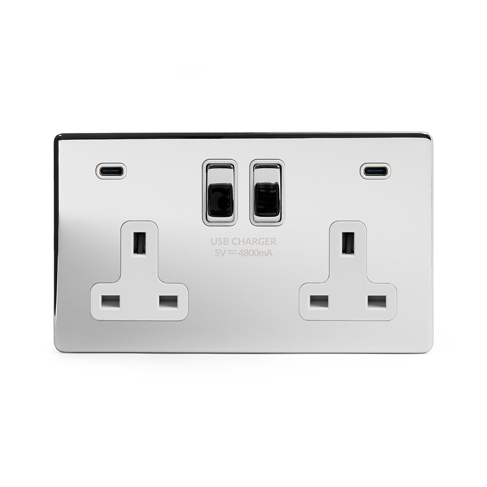 Soho Lighting Polished Chrome 2 Gang USB C+C Socket (13A Socket + 2 USB C 4.8A Ports)