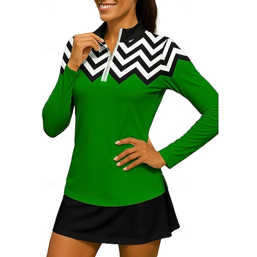 Per donna Geometrico Maglietta Maglietta sportiva Polo da golf Maglia da tennis Manica Lunga Cerniera Floreale UPF50 Resistente ai Raggi UV Alta elasticità Traspirante Tennis Golf Pickleball Collo