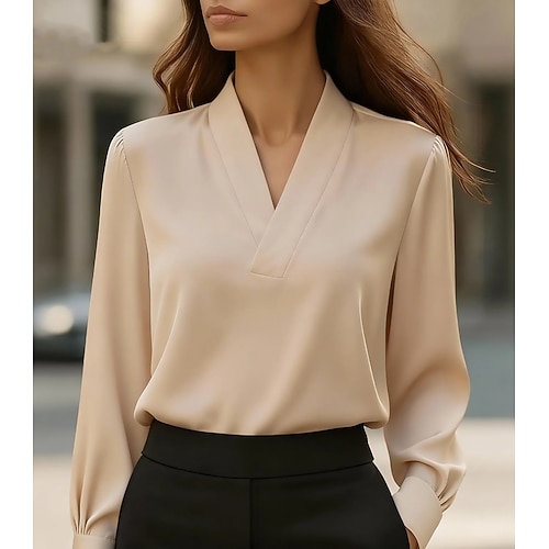 Per donna Camicia Elegant Elegante Raso/Satin Quotidiano Scollo a V Top Regolari Nero Bianco Rosa Cachi Autunno
