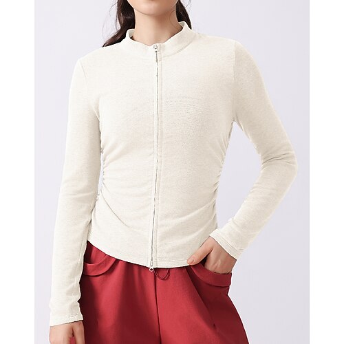 Per donna Cardigan in maglia Manica Lunga Top Athleisure Scollo a V Tinta unita All'aperto Vacanze abbigliamento sportivo Abbigliamento sportivo Nero Bianco Blu