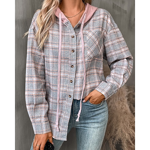 Per donna Blusa Plaid Casual Manica Lunga Con Cappuccio Top Regolari Quotidiano Uscire Patchwork Bottoni Blu Nero Rosso Viola Verde Autunno Inverno