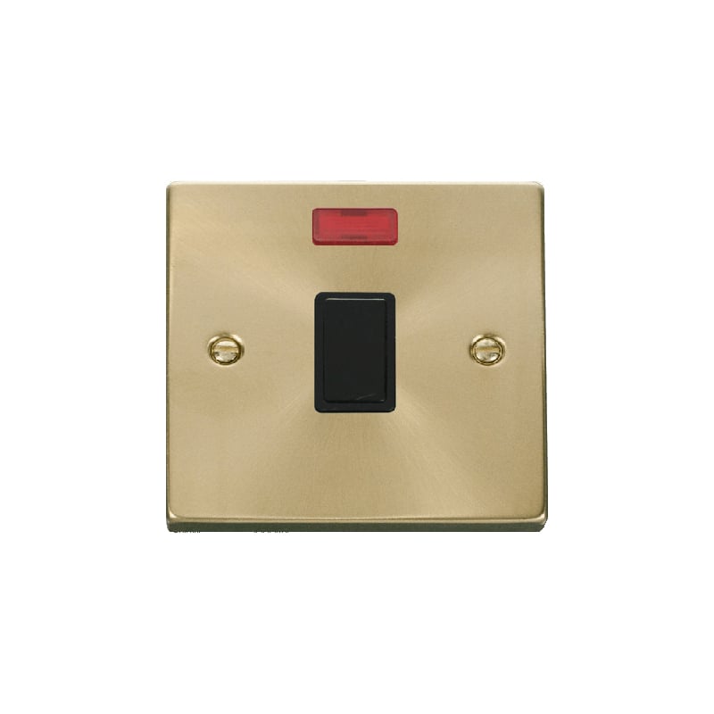 Click Deco 20A 1 Gang DP Switch with Neon Satin Brass Insert Black