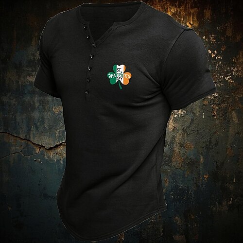 Maglietta Uomo Festa di San Patrizio Maglietta T Shirt Maglietta Henley Maglietta Tee Maniche Corte Henley Primavera e Estate Moda Festa di San Patrizio Vacanza Street Casual Quotidiana Nero Bianco