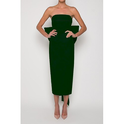 Tubino Colonna Lunghezza Tè Abiti da Ballo Festa Abito Nero Retro dell'abito decorato Senza Maniche Senza Spalline Ospite di nozze Fidanzamento Ricevimento di nozze autunnale Raso con Fiocco/Fiocchi