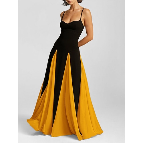 Per donna Abito maxi Abito a trapezio Abito Sottoveste Elegante Festa cocktail All'aperto Feste Ospite di nozze Patchwork Taglia piccola Blocco di colori Senza Maniche Spallina Nero Giallo Rosso