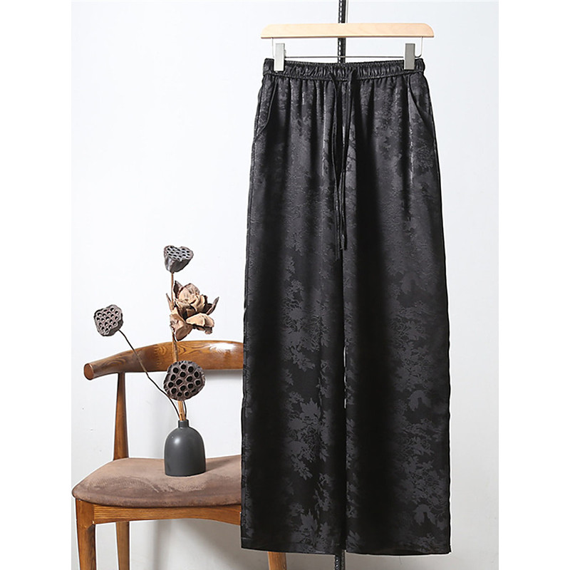 Women's Wide Leg Chinos Cropped Pants Elegant Vintage Fashion Full Length Medium Waist Solid Color Floral Graphic Patchwork Pocket Elastic Waistband Comfy Comfortable Breathable Inelastic Daily Home