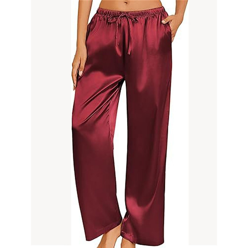 Women's Culottes Wide Leg Chinos Straight Elegant Vintage Fashion Full Length Low Waist Solid Color Plain Pocket Elastic Waistband Comfy Breathability Comfortable Inelastic Daily Home Outdoor claret