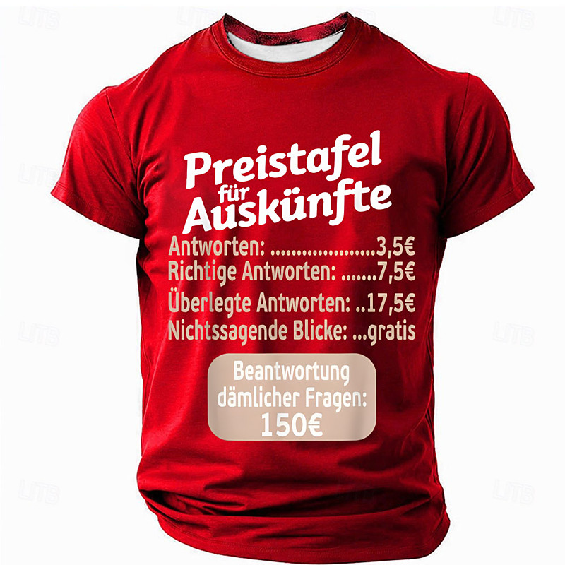 Men's Sarcastic T-Shirt - Price List for Stupid Questions Office Humor Graphic Tee Short Sleeve