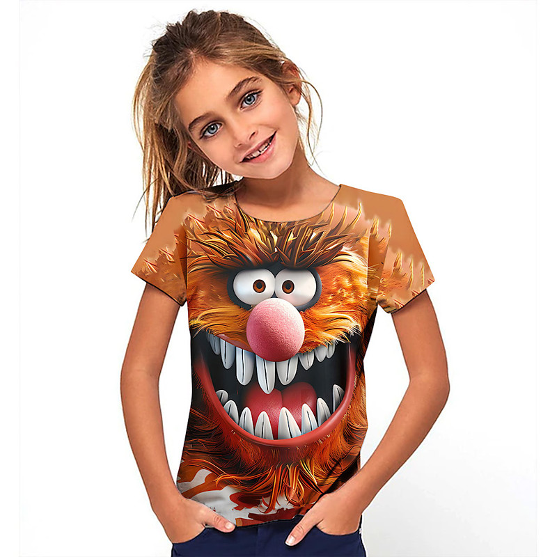 Girls' 3D Graphic Cartoon T shirt Tee Short Sleeve Summer Spring Fashion Basic Kids 4-12 Years Crew Neck Outdoor Casual Daily Regular Fit