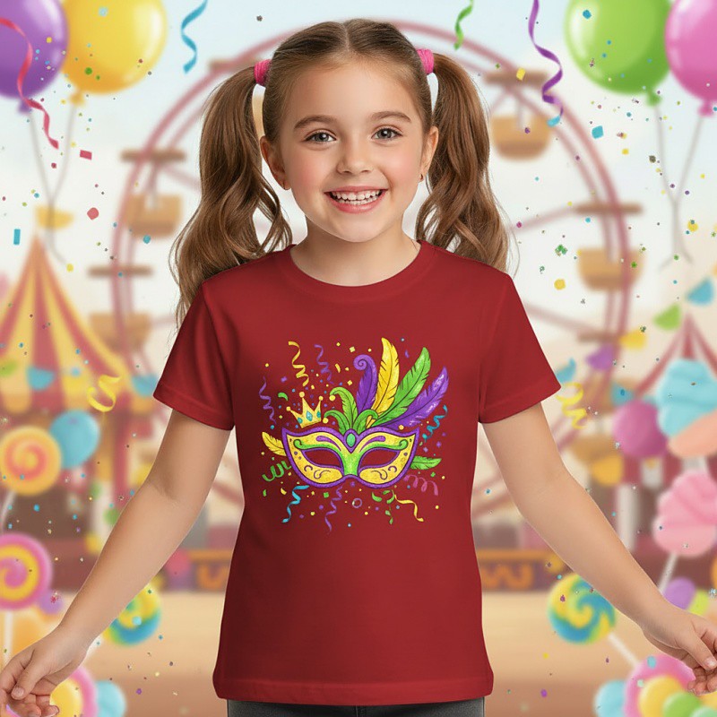 100% Cotton Mardi Gras 2026 Carnival Kids Girls' Blue Black White Graphic Mask T shirt Tee Crew Neck Short Sleeve Vacation Sports Outdoor Dailywear Active Vacation Casual Printing Summer Spring