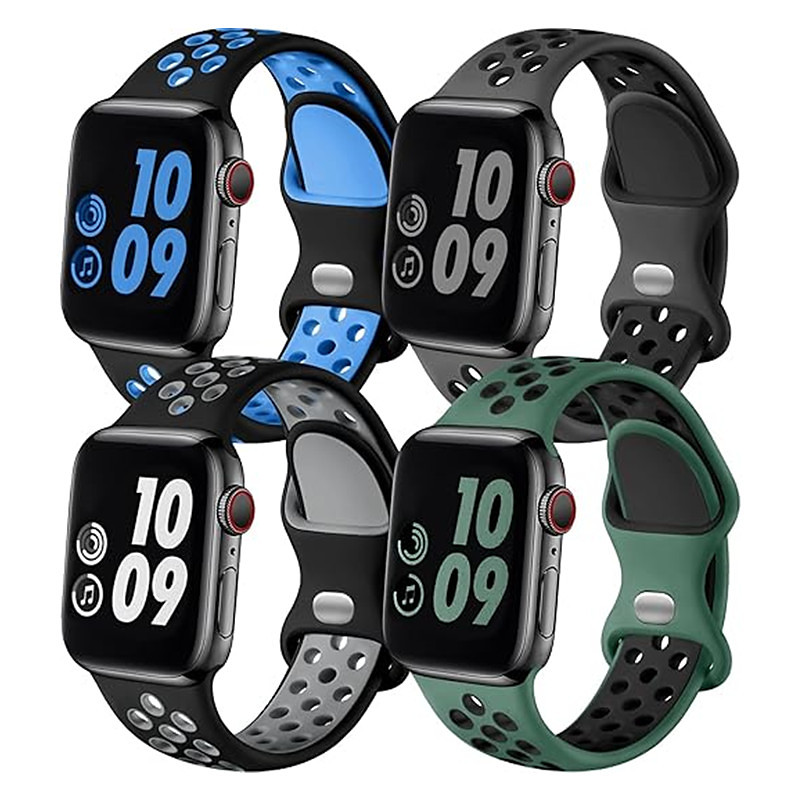 4 Pack Sport Band Modern Buckle Sport Loop Compatible with Apple Watch band 38mm 40mm 41mm 42mm 44mm 45mm 49mm Two Tone Adjustable Silicone Strap Replacement Wristband for iwatch Ultra 3 2 Series 11