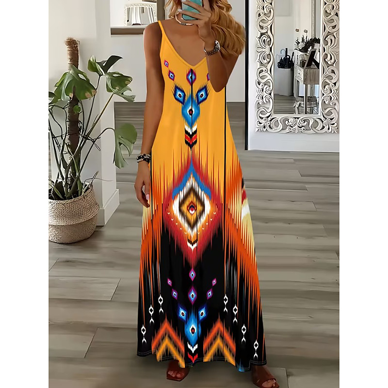 Women's Maxi Dress Casual Dress A Line Dress Slip Dress Vacation Vintage Ethnic Daily Regular Fit Paisley Sleeveless V Neck White Light Brown Dark Green Orange Summer Spring Fall