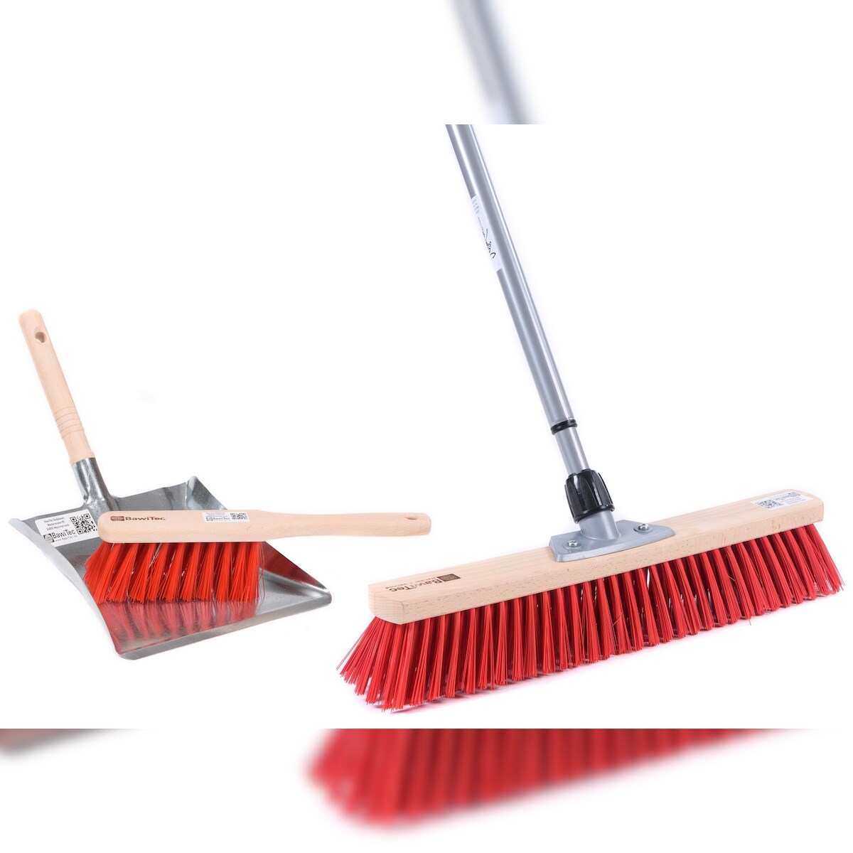 BawiTec Straßenbesen 40cm Kehrset Kehrgarnitur mit Teleskopstiel 200cm Set Besen Kunststoff rot Schrubberbesen