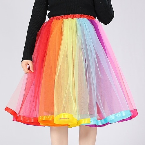 Costume di Carnevale 2026 Carnevale Costume di fantasia Tutu Gonna in tulle Retrò Vintage Anni '80 Strisce arcobaleno Adulti Per donna Halloween Carnevale Feste Performance Costume di Carnevale facile