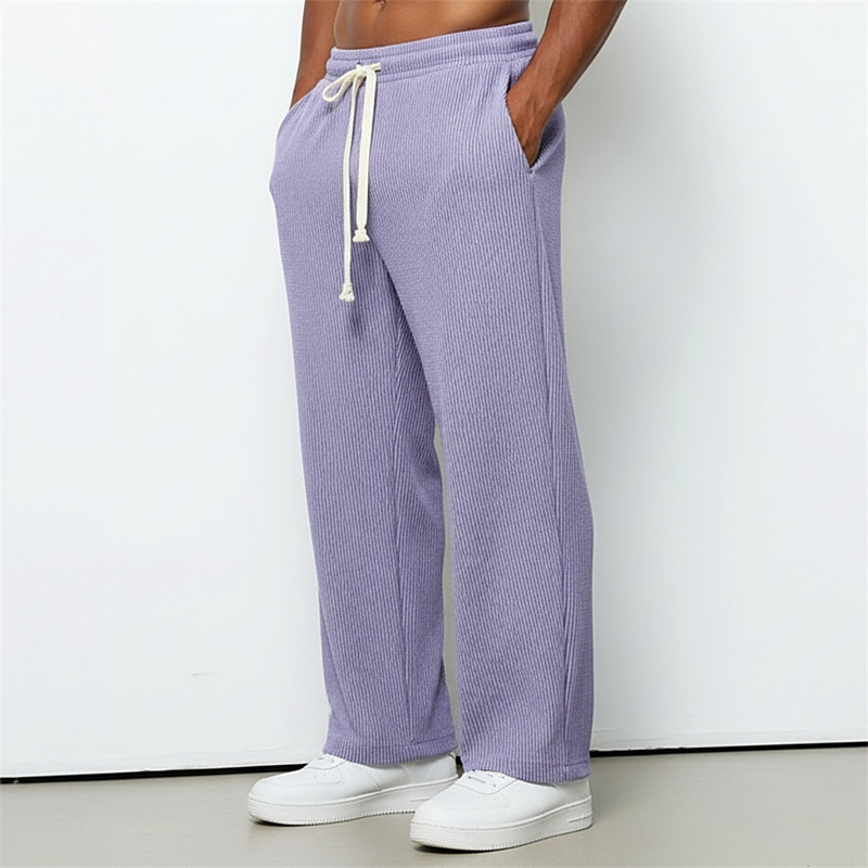 Men's Waffle Sweatpants Trousers Baggy Pants Straight Leg Sweatpants Drawstring Elastic Waist Solid Color Comfort Full Length Daily Outdoor Streetwear Vacation Fashion Blue Black Stretchy