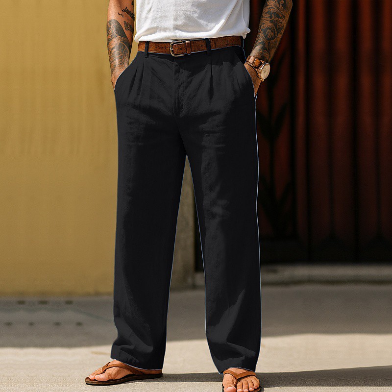 Men's Cotton Linen Pants Trousers Summer Pants Baggy Pants Beach Pants Pocket Solid Color Comfort Breathable Daily Outdoor Beach Vacation Fashion Black White Inelastic