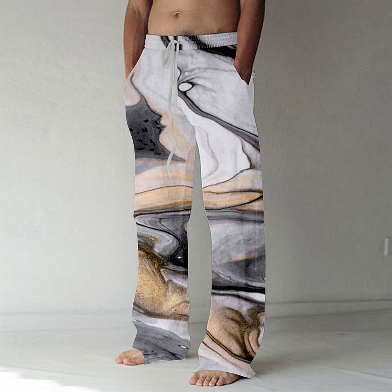 Men's Marble Abstract Liquid Art Trousers Baggy Pants Casual Pants Mid Waist Casual Outdoor Vacation Daily Drawstring Elastic Waist Wide Leg Summer Spring 3D Print Black Yellow Green