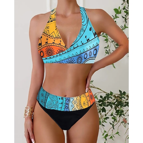 Per donna Costumi da bagno Due pezzi Birichino Costume da bagno Senza schiena Vacanza Abbigliamento da Spiaggia Grafico All'americana Senza Maniche Costumi da bagno