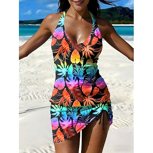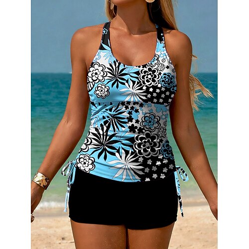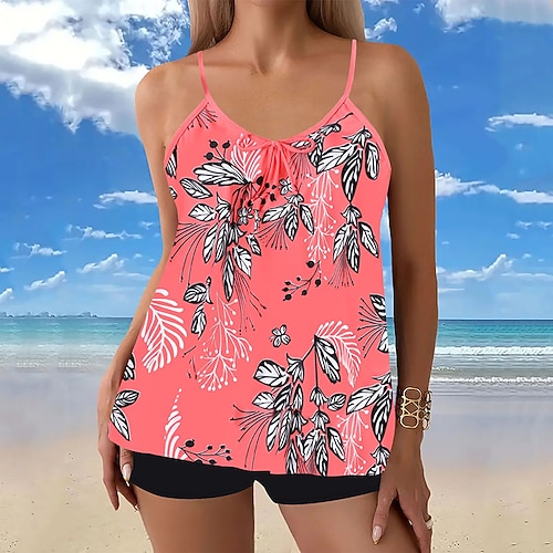 Per donna Costumi da bagno Tankini Gonna Costume da bagno Elegante Vacanza Grafico Tropicale All'americana Senza Maniche Costumi da bagno