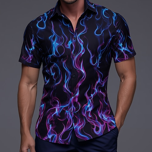 Per uomo Fulmini Fiamma Bagliore al neon Camicia Camicia con Bottoni Camicia casual Manica Corta Moda Casual Quotidiano Vacanza Estate Primavera Collo ripiegato Stampa 3D camicie con colletto Nero