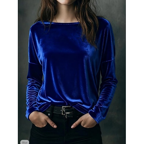 Per donna Blusa Tinta unica Elegante Casual Manica Lunga Girocollo Top Regolari Quotidiano Patchwork Glitter Nero Vino Blu Verde Primavera Autunno Inverno