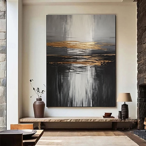 grande quadro nero da parete dipinto astratto minimalista dorato wabi sabi arte murale foglia d'oro texture 3D pittura su tela boho texture tela