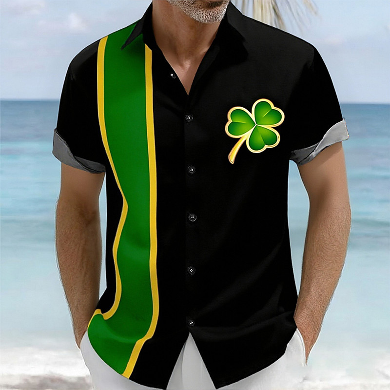 St. Patrick's Day Men's Shamrock Color-blocking Shirt Summer Shirt Button Up Shirt Short Sleeve Fashion Casual Holiday Summer Spring Turndown 3D Print Collared Shirts Black / Green Black / Purple