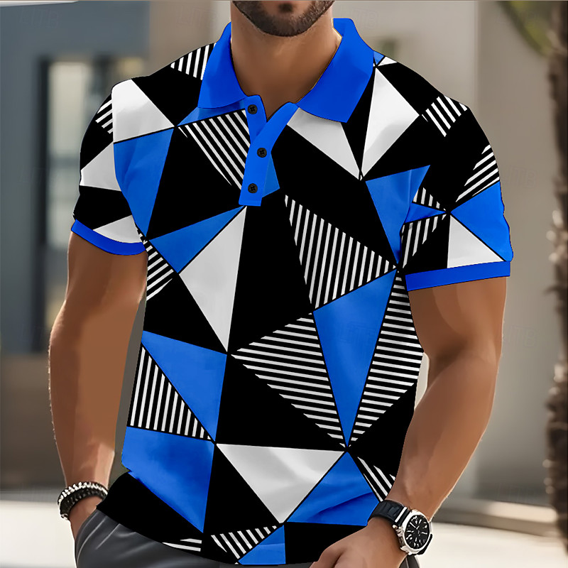 Men's Geometric Polo Short Sleeve Polo Shirts Collared Shirts Business Casual School Athleisure Daily Wear 3D Print Summer Black White Red