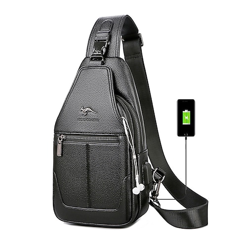 Borsa a tracolla da uomo in similpelle con porta di ricarica USB, zaino a tracolla antifurto per spostamenti quotidiani, viaggi, lavoro, abbigliamento casual da città
