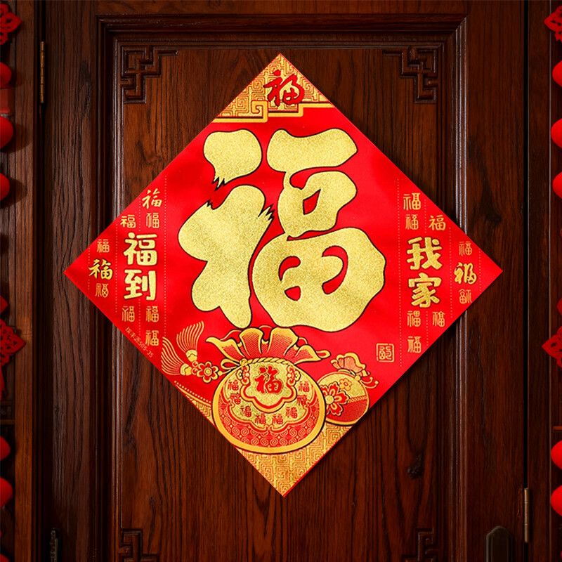 1pc 13.7in Velvet Chinese New Year Self-Adhesive Fu Ornament,2026 Spring Festival Fu Velvet Stickers, Year of The Horse Lunar New Year Decorations for Home Door Window Cabinet Fu Dao Wo Jia