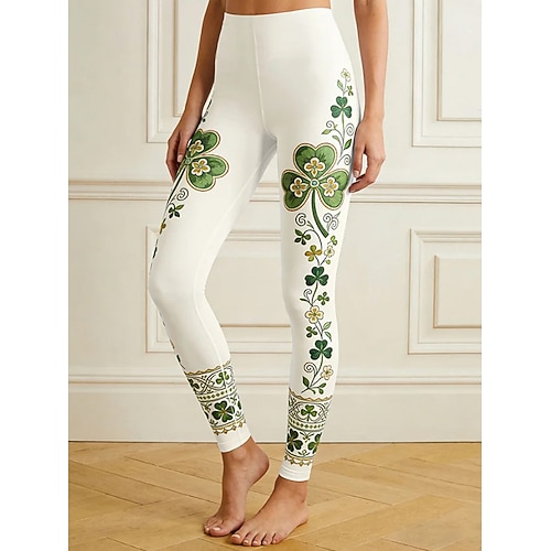 Per donna Leggings Vacanza Vintage Stile Etnico Lunghezza intera Vita AltaPantsGiorno di San Patrizio Floreale Grafico Trifoglio Stampa 3D Comodità Asciugatura Rapida Traspirabilità Elasticizzato