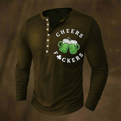 San Patrizio Per uomo Grafico Citazioni Detti Maglietta Maglia Henley Camicia a Maniche Lunghe Manica Lunga maglietta Stampa 3D Henley Camicia Moda Essenziale Classico Quotidiano Vacanza Giorno di