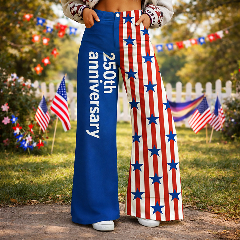 Retro Vintage 1970s Pants Wide Legged Pants Hippie Disco High Waist Fancy Dress Women's Masquerade 4th of July Party American 250 Semiquincentennial Adults' Pants