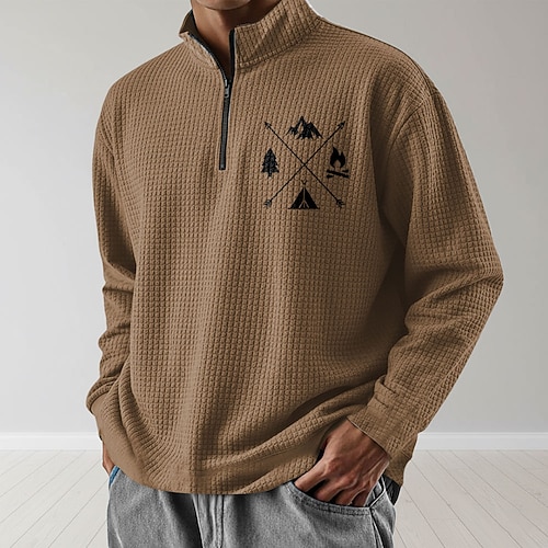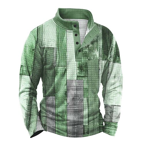 Per uomo Geometrico Plaid Nido d'ape Felpa Moda Quotidiano Classico Casual Collo alla coreana Zip a un quarto All'aperto Casa Ufficio Lavoro Blu Arancione Verde Grigio Con zip Autunno Inverno