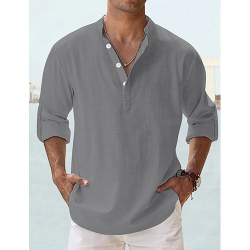 Per uomo Camicia 100% cotone lavaggio acido Maglietta Manica Lunga Collo alla coreana Primavera Autunno Autunno Inverno Semplice Vintage Streetwear Casual Con zip Base Casa Streetwear Casuale Nero