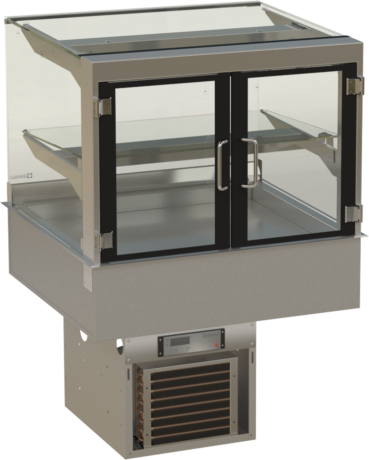 HAGOLA Showcase "Bergen" eckig, für 2xGN1/1, 2 Auslagen 20mm Tiefe, 760x510/200+325x710mm (BxHxT) steckerfertig mit Transporthalterung.