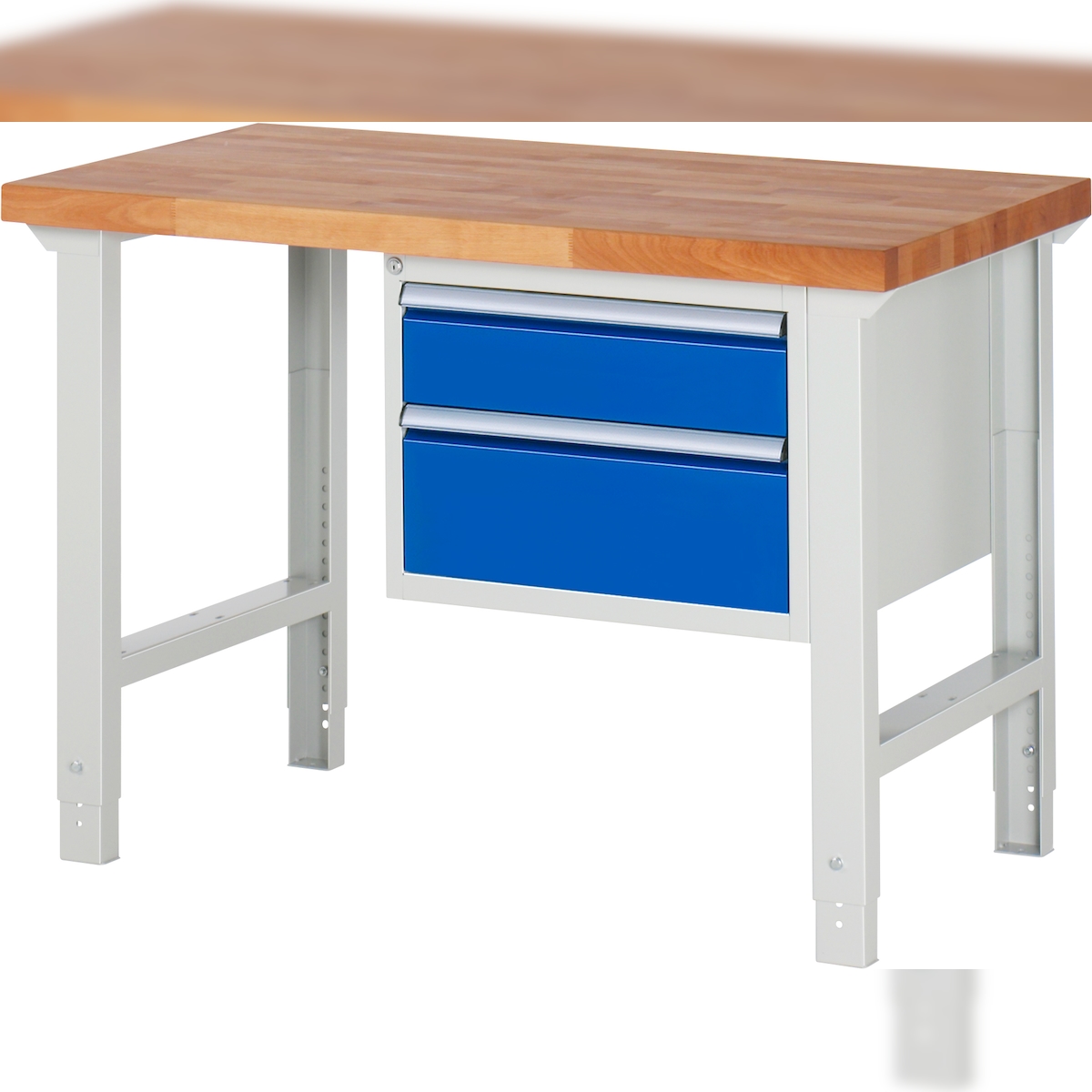 PROREGAL Werkbank Serie 7000 - Modell 7123 | HxBxT 79-114x125x70cm | 2x Schublade | Schubladenmaße 1x150 + 1x210mm