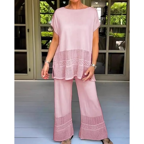 Per donna Set di Pantaloni Bolero Top Manica Lunga Girocollo Semplice Foro Elegante Moda Streetwear Casuale Quotidiano All'aperto Nero Rosa Rosso Estate Vestibilità comoda
