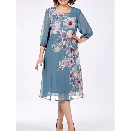 Per donna Abito Midi Abito a Tubino Vacanza Casual All'aperto Uscire Vestibilità comoda Floreale Mezza Manica Girocollo Blu Blu chiaro Nero Estate Primavera Autunno
