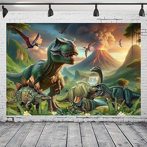 mondo dei dinosauri giurassico t-rex triceratopo vulcano giungla tropicale arazzo da parete decorazione camera da letto per bambini sala giochi ragazzi arazzo da parete festa di compleanno sfondo