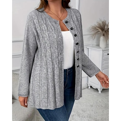 Per donna Felpa Cardigan Streetwear Casual Tinta unica Girocollo Bottoni Lavorato a maglia Manica Lunga Top Regolari Maglia Quotidiano Uscire Weekend Grigio Autunno Inverno