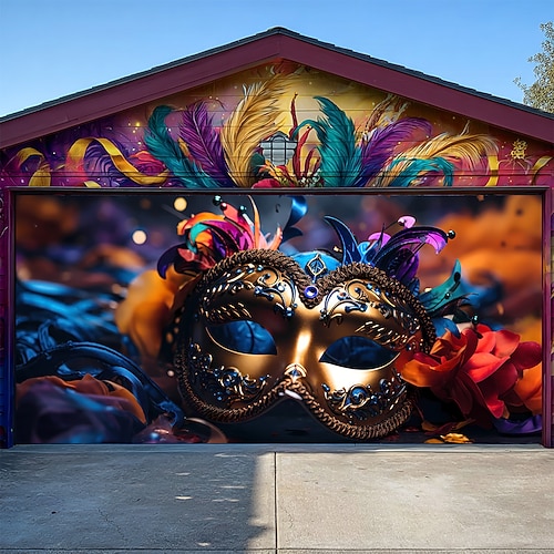 Martedì grasso Copertura per porta del garage Grande appeso Maschera Piume Lusso 3D Vibrante Da serata All'aperto Sfondi di ripresa Porta d'ingresso Stile Carnevale di Venezia Arredamento per la casa