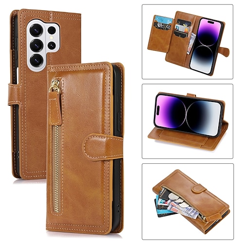 Handy Hülle Handyhüllen Für Samsung Galaxy S26 S26 Plus S26 Ultra Brieftaschenhülle Reisverschluss Vollschutz Ständer Retro PU-Leder